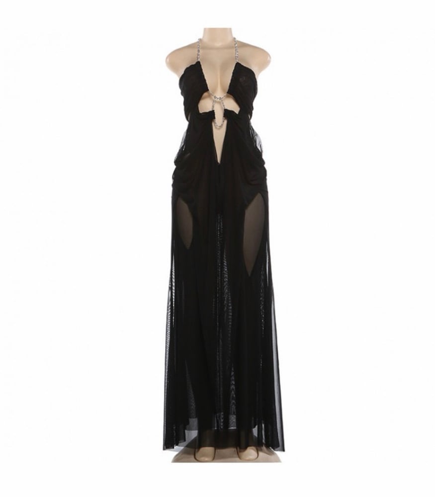 Beautiful Flowy Backless Chain Maxi Dress